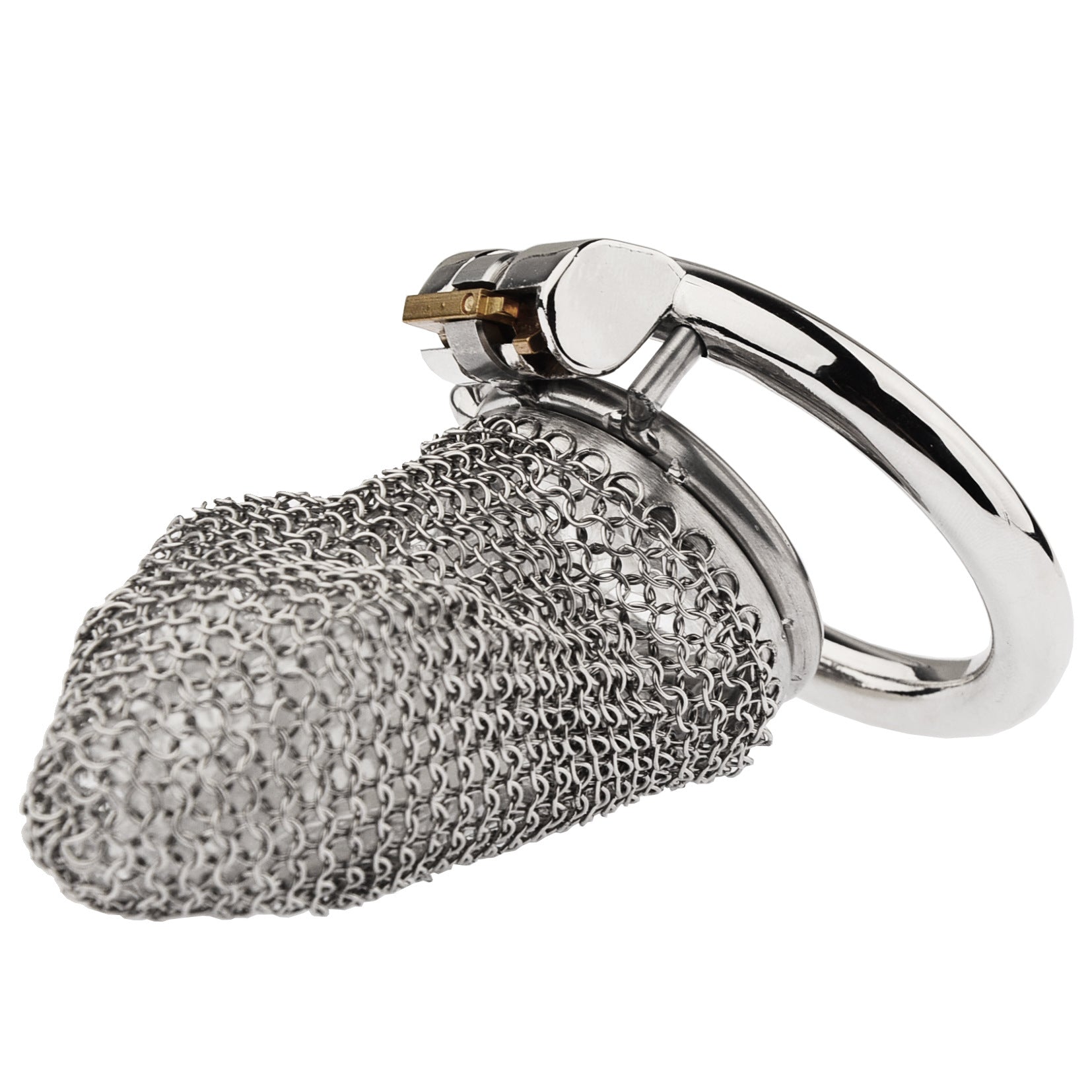 This product is a male chastity device crafted from flexible stainless steel mesh or chainmail, resembling a "soft armor" for the penis. Its defining feature is the fine metallic mesh construction, which offers superior breathability and a lightweight, conforming fit. Designed as a cage or enclosure, it secures with a lock to enforce chastity. The term "multi-size net cage" suggests it may be adjustable or come in various sizes to ensure a snug and comfortable fit for different users. As an adult novelty toy, it is made from body-safe stainless steel for hygiene and durability.